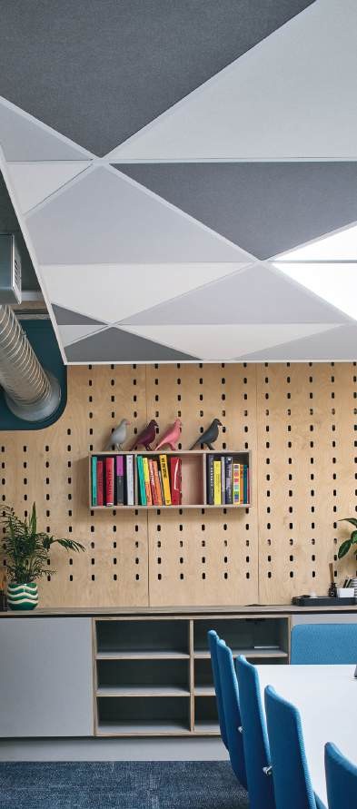 Zentia’s ceiling tile solutions are designed for maximum productivity, with light-reflecting and low VOC-emitting ceiling tiles. The Prestige dB range, for example, offers sound attenuation performance of 41dB, making it suitable for individual offices, board rooms, and spaces where privacy is a primary concern. For companies needing effective acoustic control without compromising on design, the Sonify range is a canopy and baffle ceiling solution with complementary wall absorbers that offers excellent acoustic control, and there are 35 colours and 17 tile shapes to create unique designs.