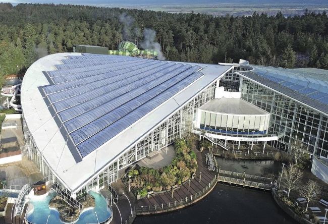 Part of a 400-acre site, Whinfell Forest in Cumbria has accommodation for nearly 5,000 guests. At its centre is the Subtropical Swimming Paradise, with pools and tropical plants all enclosed under a widespan roof. However, Center Parcs found that there were increasing heat loss problems with the old roof. This meant that maintaining the level of heating required to create a comfortable environment for both guests and plants was generating significant costs, as well as effecting the park’s overall environmental impact.