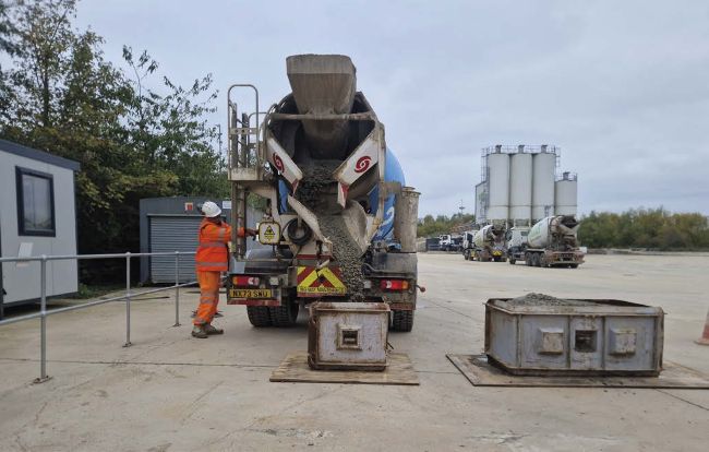 Other participants include Mott MacDonald, the Minerals Products Association, and Aston University. In October, the trial culminated in a successful demonstrative batch of readymix concrete using RCF-based cement being poured into moulds at Holcim UK’s readymix concrete plant in Whetstone, Leicestershire.