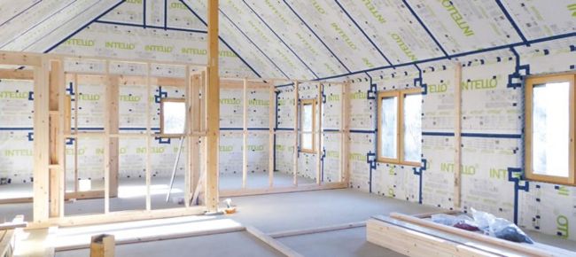 Internal membranes like Pro Clima Intello Plus, used on internal walls and ceilings, and Pro Clima Dasatop, used in lofts and roofs applications, provide airtightness while managing vapour diffusion by adjusting to changes in humidity. They create a smart vapour control layer that reduces the risk of condensation and supports safe drying in constructions that involve wet materials, such as plasters or screeds. These membranes are often referred to as ‘intelligent’.