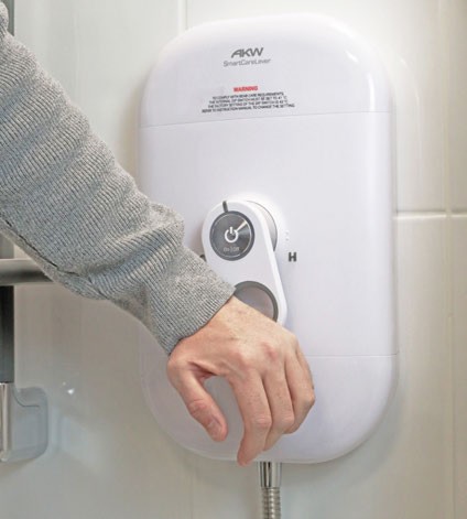 Minimise effort for the end user by choosing appliances and fixtures with easy-to-use controls that help to reduce strain on arthritic hands, such as lever, paddle or infrared taps and soft-close drawers. In the bathroom, think about shower enclosures with D-handles and D-latches to reduce strain on fingers and wrists. AKW’s SmartCare Lever Electric Shower has been designed so it can be operated using only two fingers if hands or wrists are affected, making it suitable for those with limited hand mobility.