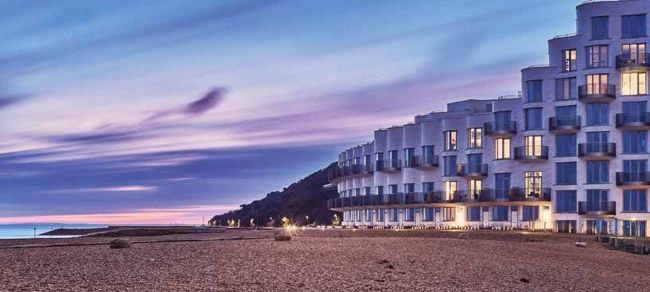 Shoreline, a residential development of 84 homes with panoramic views over Folkestone seafront, is designed to make a statement. The development is crescent-shaped and features an undulating white brick rainscreen façade that will sparkle in the sunlight, mirroring the water before it. While designed to look spectacular, it’s also important that the façade delivers the performance required of modern buildings. With this in mind, the architect specified the Knauf Through Wall System for the rainscreen façade.