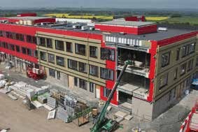 Sport and leisure facilities on the site include a swimming pool, meaning the school has one of the few Passivhauscertified pools in the UK. While most of the high school is of steel frame construction, the pool hall uses a cross laminated timber (CLT) structure.